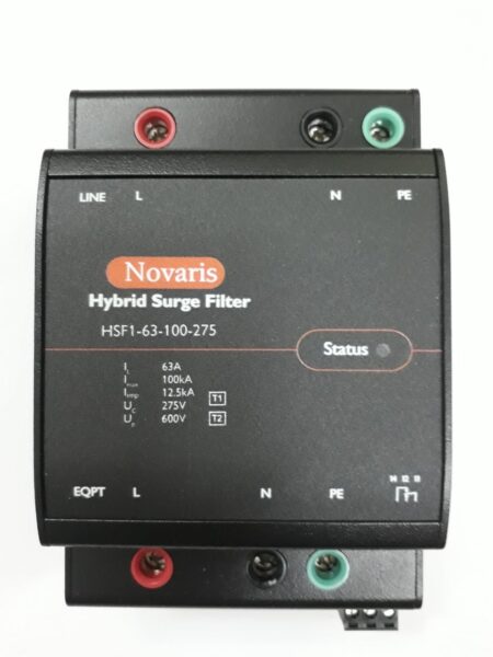 Thiết bị cắt lọc sét 01 pha HSF1-63-100-275: mắc nối tiếp vào nguồn điện có dòng tải 63A, có 3 tầng bảo vệ: L-N, L-PE, N-PE, điện áp danh định 230V, 100kA 8/20µs, có đèn LED hiển thị hoạt động, công nghệ MOV/LC Filter/ MOV, thời gian nhạy đáp tức thời <1ns, tiêu chuẩn bắt buộc AS/NZS1768-2007 và AS/NZS3000. Đặc tính kỹ thuật bao gồm: