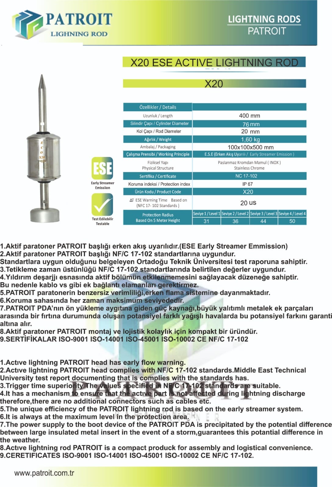 Danh mục: Kim thu sét, Kim thu sét Patroit